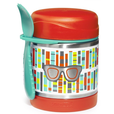 This stainless steel kids food jar keeps meals warm or cold for your favorite student. Store the spork, or most utensils, in the handy built-in holder for on-the-go convenience. Coordinates with Skip Hop Forget Me Not backpack & lunch bag set.