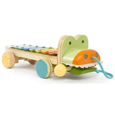 Eight unique notes line the croc’s back, allowing little ones to make music with this activity-filled friend. Hear his mouth click and clack as this rockin’ reptile is pulled along the floor!