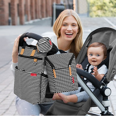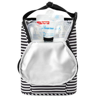 The Skip Hop Grab & Go Double Bottle Bag is insulated to keep two bottles or sippy cups cold for up to four hours. It also makes a great bag for baby snacks! This is perfect for a day out with baby!