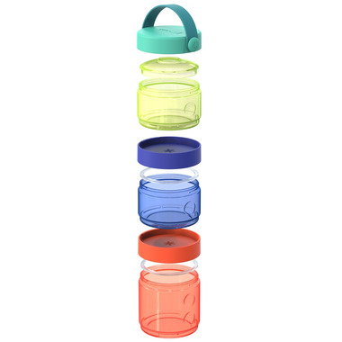 Skip Hop Grab & Go Formula-to-Food Container Set is great for formula or food; just pack, stack and snack! With interchangeable, twist-and- lock lids, this baby food storage containers can be used separately or stacked together and carried by the easy-grab rubber top handle. Featuring indented bodies for an easier grip, the colourful containers are transparent so you can easily view what’s inside. Just pack, stack and snack!