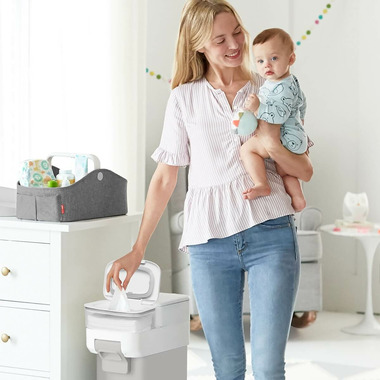 The clear solution for keeping wipes fresh, handy and ready to go! Skip Hop’s décor-friendly wipes holder features quick and easy single wipe dispensing and a secure lid to seal in moisture. It’s also a perfect fit with the Skip Hop Nursery Style Diaper Pail Grey & White to complete your modern nursery style.