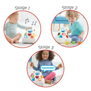 Teach little ones shapes and colors in three stages with this fun friend. Skip Hop interactive Yeti talks, spins and more as baby explores. As baby learns and grows, it switches to a shape sorter and game mode with rewarding lights, music and giggles.