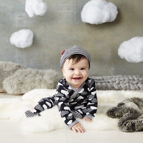 This new footie and hat set is a whimsical new set from the Skip Hop Star Struck layette capsule collection.
