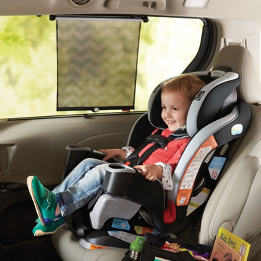 Cool comfort, sun protection and personal style for your car! Keep little ones comfortable and protected from the sun’s heat and harmful UVA/UVB rays with this car sun shade. The slightly sheer fabric lets you see outside, while the chic chevron print keeps the car interior looking stylish.