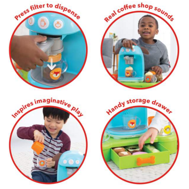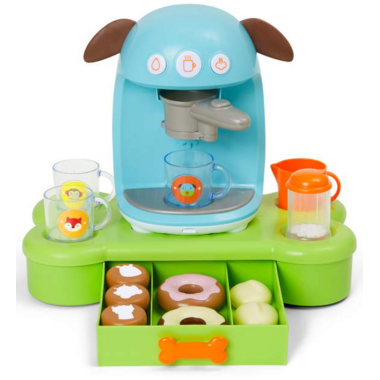 Build-your-own café treats! Loaded with a whole “latte” fun, little ones will love to make and serve yummy “drinks” like a real barista with this doggone cute set. A fill & drop filter, real coffee shop sounds, plus all the extras make this 19-piece set a perfect pick for pretend play.
