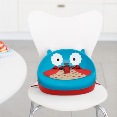 Skip Hop Zoo Booster Seat gives kids a boost at the table with the help of a zoo pal! Offering two stages of use, this booster seat grows with baby. With a removable 3-point harness, it includes adjustable chair straps and non-skid feet to provide stability and safety for little ones. And with a lightweight, streamlined design, this portable booster seat makes it easy to eat on the go!
