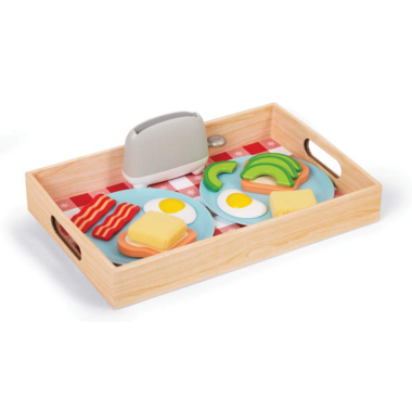 16-piece set includes: Pop-Up Toaster, 2 Plates, 2 Bread Slices, 2 Butters, 4 Avocado Slices, 2 Eggs, 2 Bacon Strips, Serving Tray