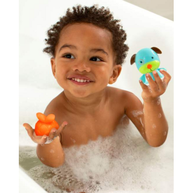 Set includes One Monkey & One Dog bath toy , Interchangeable mermaid tails—just twist & switch! , Twists apart for easy cleaning , Easy for little hands to hold , Floats in water, Skip Hop Zoo® Mix & Match Flippers Unicorn & Fox also available