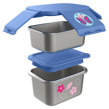 Pack your little ones lunch, snacks and more in this handy stainless steel kit. Designed to stack and lock together, the set includes one large and one small container with secure lids for on-the-go convenience. Choose your favorite ZOOҮ character and match it to your backpack, lunchie, and more mealtime must-haves in the collection.
