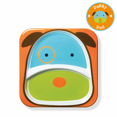 - With two sections to separate food, Skip Hop’s dishwasher-safe kids' plate is made of sturdy melamine