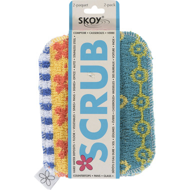 The Skoy Scrub is a new concept in kitchen scouring pads. This reusable scrub comes from Europe and is made from cotton and non-toxic hardener. It outlasts traditional scrubbers and in turn saves money and controls waste. Measures 5 x 6 inches.