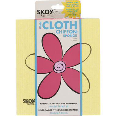 Skoy is a 100% biodegradable, reusable, and even compostable cleaning cloth. Made using all natural materials (cotton and wood pulp cellulose). Skoy can absorb 15x its own weight and each one can outlast 15 rolls of paper towels!