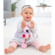 Filled with pattern, texture and soothing sounds, our cute chime & teethe toy keeps baby busy and happy—at home and on the go. Complete with a textured teether and a colorful clip that easily attaches to strollers, your little one will love to play with these adorable animal friends.