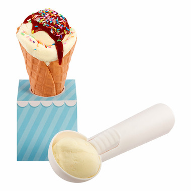 • Included Ingredients: 1 Ice Cream, 1 Cone, Chocolate Sauce, Sprinkles Topping, and Whip Cream, 1 Scoop, 1 Stand