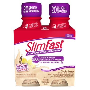 It's easy to start any time just Pick A Date, Lose The Weight!! The SlimFast Advanced Nutrition Vanilla Cream Shake is a meal replacement high protein shake in a ready to drink format containing 20g of protein, 5g of fiber, and only 1g of sugar. It can help control hunger for up to 4 hours and, because its easy to grab-and-go, this high protein shake is convenient for any lifestyle. It also contains 180 calories, offers 24 vitamins and minerals, and is gluten free. Even better, it has an award for best taste for two consecutive years, was Awarded Best Shake by Men's Health, and was designated by OK! Magazine as the best way to lose weight.
