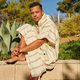 Slowtide Adult Baja Stripe Poncho Cream
