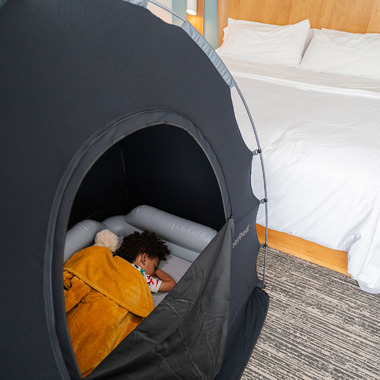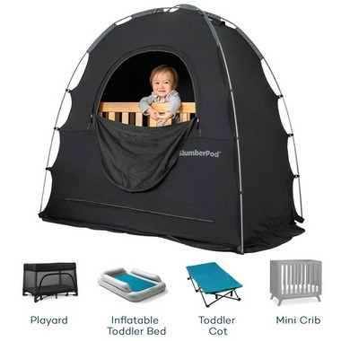 Invented by parents, this dark and breathable SlumberPod helps make room sharing with little ones less stressful and more restful. Pair with a playard, mini crib, or toddler air mattress for the perfect private sleep nook at home or on the go.