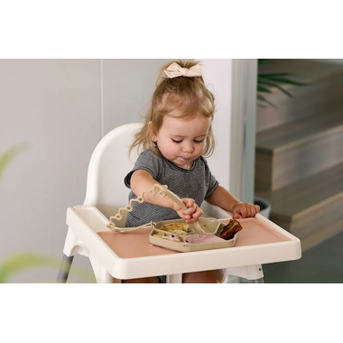 Saving your table and cleaning time with their stylish and practical placemat that fits on most highchair trays (including the IKEA Antilop). The travel band included makes it easy to roll up and put in the diaper bag to take on the go.