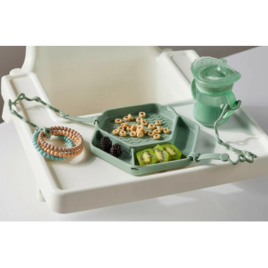 The Fun Tray is an all-in-one tray + toy straps attachment system that keeps items off the floor. Features a strong suction base minimizing spills as your little ones learn how to feed themselves.