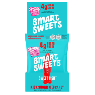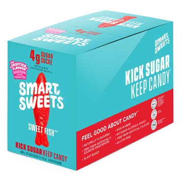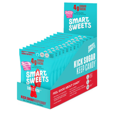 Kick Sugar Keep Candy! Each pouch of Smartsweets Berry Sweet Fish contains just 3g of sugar per 50g.