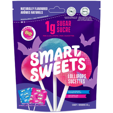 KICK SUGAR: Feel good about candy with SmartSweets #KickSugar Lollipops. Just 1g of sugar per 2 lollipops - that’s 80% less sugar per 50g versus the other leading lollipop hard candies! Smartly sweetened with high-quality naturally sweet fibers and a touch of stevia.