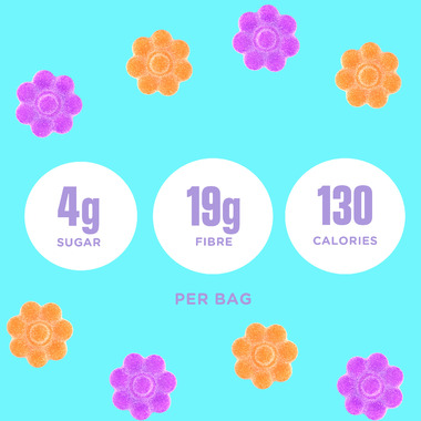 Celebrate spring with a tangy twist! Bursting with bright, fruity flavour, Sour Flowers come with two juicy flavours per bag: Peach and Purpleberry.