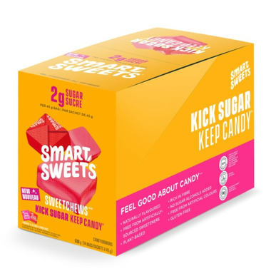 KICK SUGAR: Feel good about candy with SmartSweets #KickSugar SweetChews. Just 2g of sugar for the 45g bag - that’s 92% less sugar per 50g versus the leading chewy candy equivalent.