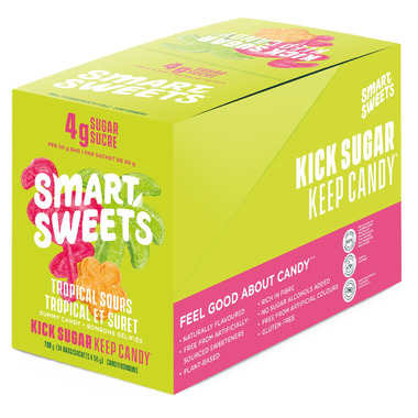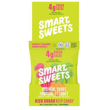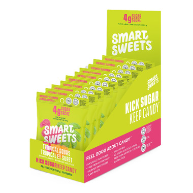 Kick sugar, but keep candy with SmartSweets new Tropical Sours Candy. Enjoy 3 delicious and tropical flavours in fun shapes.