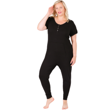 I have a lot of stomach issues and can’t stand to have anything tight around my waist and this romper is perfect for my needs! I have even gone to the Smash+Tess website and purchased four more items (they have some great sales). I did buy this on sale and think the regular price is a bit much but this is a small Canadian business so I understand they don’t have the buying power of a larger company and I feel good supporting them. I think the fabric is of good quality and if you have the right fit the crotch shouldn’t hang down. I am 5’6” and did not have any of these issues. I am on the heavier side so I am aware that this is not my most flattering outfit but for wearing around the house it’s awesome. If I do wear it out a jean jacket makes a cute addition. If you are self conscious of your bottom tie a shirt or jacket around your waist or add a belt to break it up, or even better, don’t worry about what others are thinking! You are beautiful the way you are!