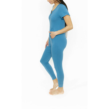 Designed with a 4 button front Henley opening, short rolled cuff sleeve, cute front pocket and jogger leg