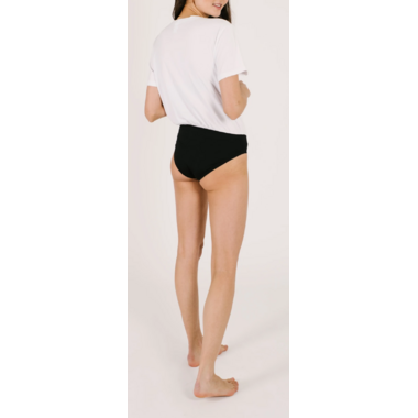 I bought this product on a whim and I am so happy I did. It is the perfect tshirt bodysuit for high waisted jeans. The underwear part is extremely comfy and doesn't ride up at all. I just bought it in black because I love it so much! Fits true to size.
