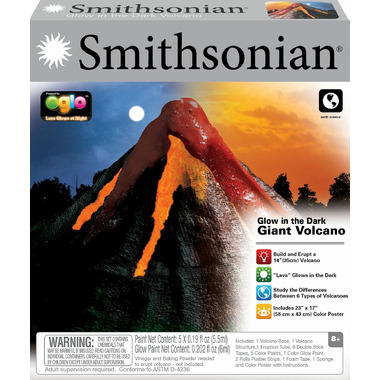 With the Smithsonian Giant Volcano kit, you will discover a world of adventure, discovery and wonder. Build and erupt a 14" volcano with glow in the dark lava. Volcano is bright in the light and lava glows in full color in the dark - Oglo changes with any light and Glows Super Bright.