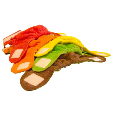 Pack contains one diaper of each colour: brown, green, orange, yellow and red.