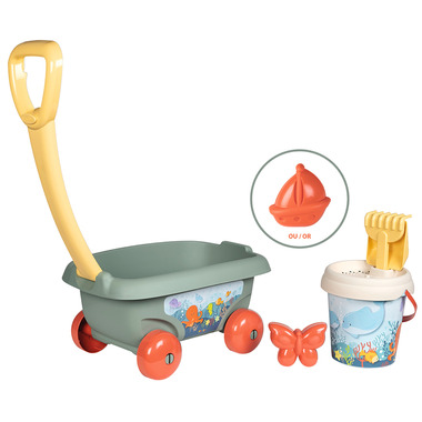 Your child can spend days having fun on the beach! With his bucket, sieve, rake, shovel and sand mould, he'll make lots of sandcastles! What's more, he'll be able to transport sand and water with the trolley, and after playing all he has to do is put all his accessories away inside! The filled Smoby Life beach trolley will quickly become a must-have!