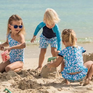 Sandcastles and rockpools, our Aqua Bloom Baby Set is ready for your little one to explore. Featuring a long sleeve rash top and matching printed boardies, using recycled materials that have UPF 50+ Sun protection - helping to ensure skin is protected from the suns harmful rays. Protect your littlest beach goer and help protect the planet.