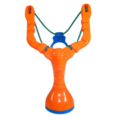 The Snow Sling Shot from Snow Sector has a built in base to make a snow ball then put it in your sling shot to shoot at your target.