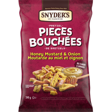 Pretzel Pieces Honey Mustard & Onion. Flavored sourdough hard pretzel pieces bursting with flavor!