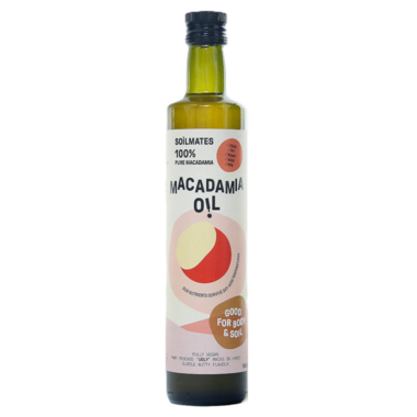 Soilmates brings you Macadamia Oil that's 100% pure and packed with nutty goodness! Sourced from the finest macadamia nuts, each golden drop has a richness and a hint of sweetness. Great to drizzle over salads or used for cooking and baking.