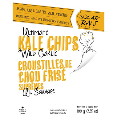 Solar Raw Ultimate Kale Chips Wild Garlic are organic, raw gluten free, vegan and dehydrated.