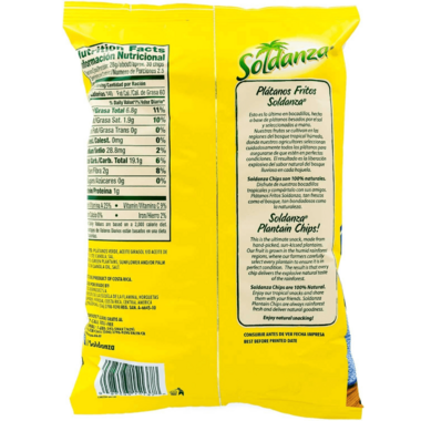 Soldanza Chips are 100% natural. Soldanza Plantain Chips are always rain forest fresh and deliver natural goodness.