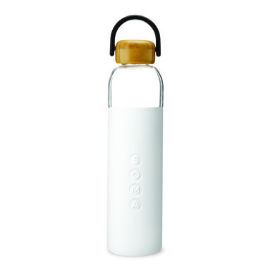 SOMA added a soft-touch silicone handle for more carrying options. Made from high quality, shatter-resistant borosilicate glass, with an easy grip silicone protective sleeve and a leak-proof bamboo cap. It's perfectly designed to fit into your bag, your cup holder, and your life.