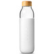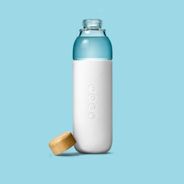 Soma Water Bottle is made from high quality, shatter-resistant borosilicate glass, with an easy grip silicone protective sleeve and a leak-proof bamboo cap. Designed to fit into your bag and cup holder.