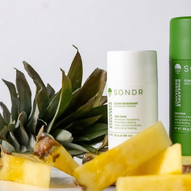 Picture this: you just crushed your favourite HIIT class and grab a fresh, icy smoothie. You feel energized, refreshed, and ready to conquer the rest of your day. That's SONDR's pineapple bergamot deodorant. Get energized with sweet, fruity and slightly spicy pineapple combined with the epic tart and floral notes of bergamot.