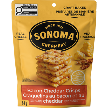 Sonoma Creamery Bacon Cheddar Crisps, Crunchy Real Cheese Snacks.