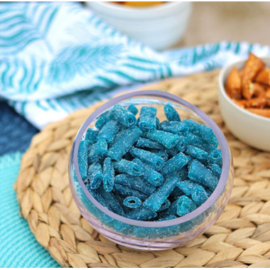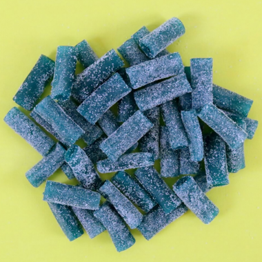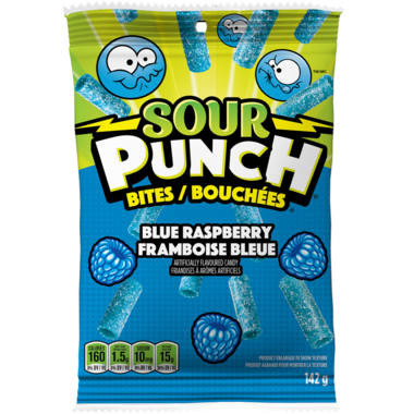 CORN SYRUP, SUGAR, WHEAT FLOUR, HIGH FRUCTOSE CORN SYRUP, CITRIC ACID, MALIC ACID, TARTARIC ACID, FOOD STARCH MODIFIED, PALM OIL, GLYCERYL MONOSTEARATE, SODIUM CITRATE, GLYCERIN, ARTIFICIAL FLAVOR, COLOR ADDED BLUE 1.