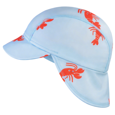Light blue swim cap with lobster all over print, perfect to protect your babys head and eyes from the sun. Made from high-quality stretch fabric that offers UV50 protection, dries quickly, and resists salt and chlorine. Pair it with the matching one-piece swimsuit!