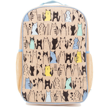 SoYoung's Grade School Backpack is bound to make first days at school that much more exciting! Plus, for when spills happen at recess or lunch, it's easy to clean up after with our machine washable raw linen. This Curious Cat's print is colourful and cute as can be. We think these friendly felines are just purr-fect!