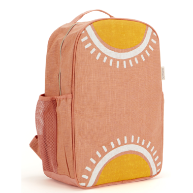 This golden sunrise will brighten up your little one's day! Just as the sun keeps shining, and its sun-stoppable, your little one can take on any challenge and be a shining star too! The Sunrise Muted Clay Grade School Backpack fits all your kiddo's school and daily essentials including their SoYoung Lunch Box and Kids Case.