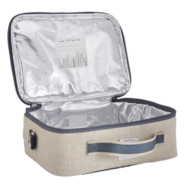 Lunch boxes made of durable raw (uncoated) linen. Clean, modern feel and retro-inspired designs paired with machine washability make these a new favourite! Comes with a leak proof insulated insert for easier cleaning and to help avoid staining from spills. Recommended for: saucy or wet lunches/snacks. Because this beauty can be machine washed!