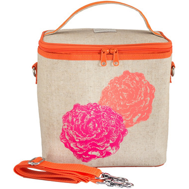 SoYoung Raw Linen Neon Orange & Pink Peonies Large Cooler Bag